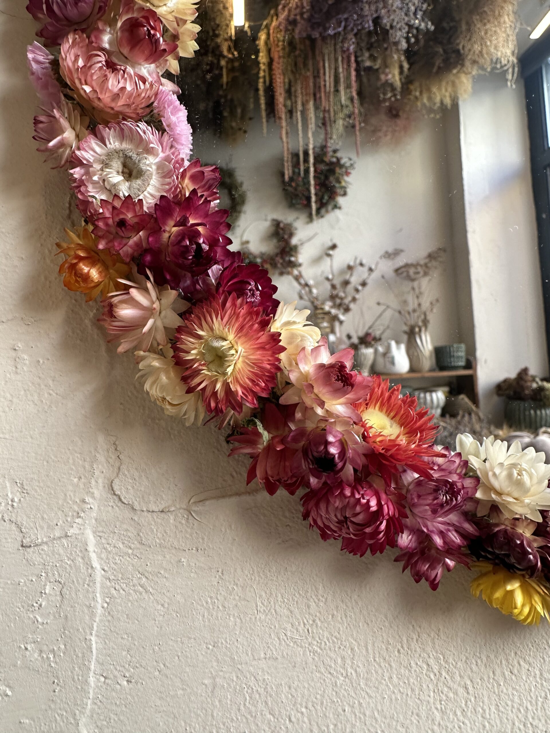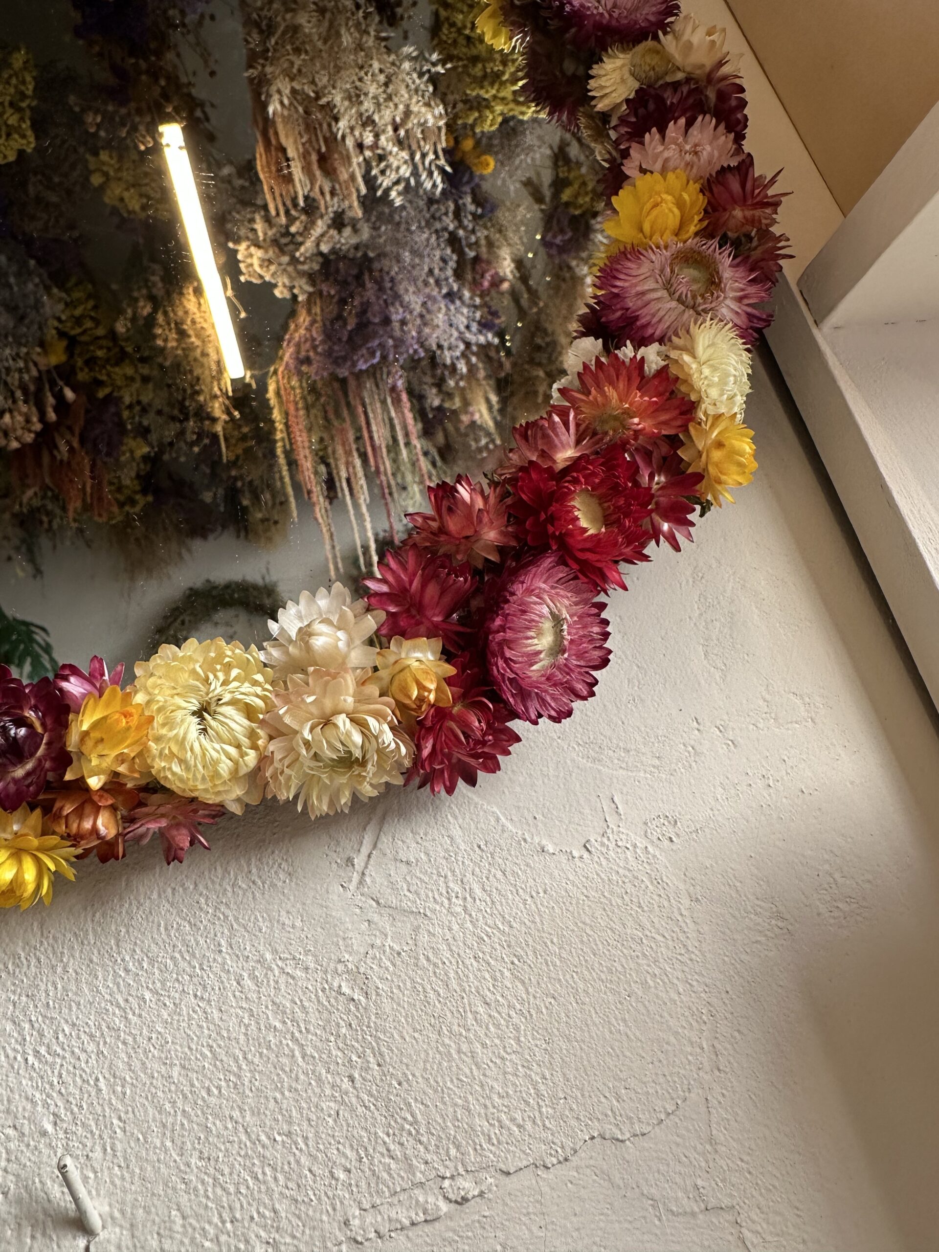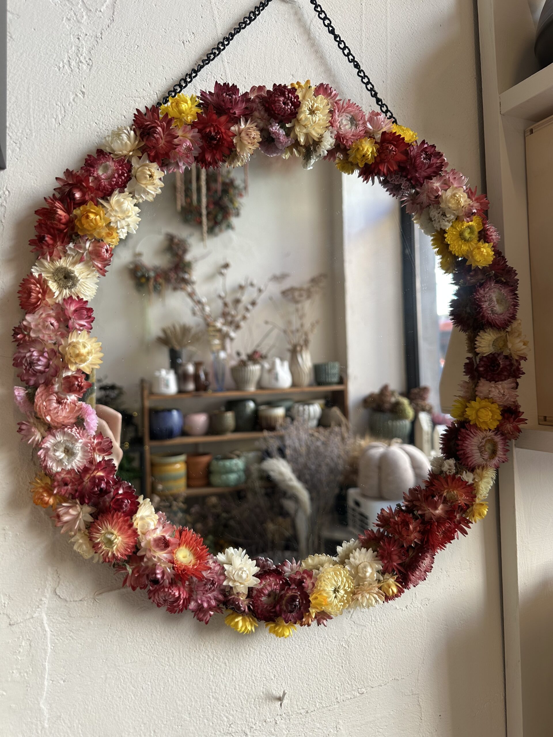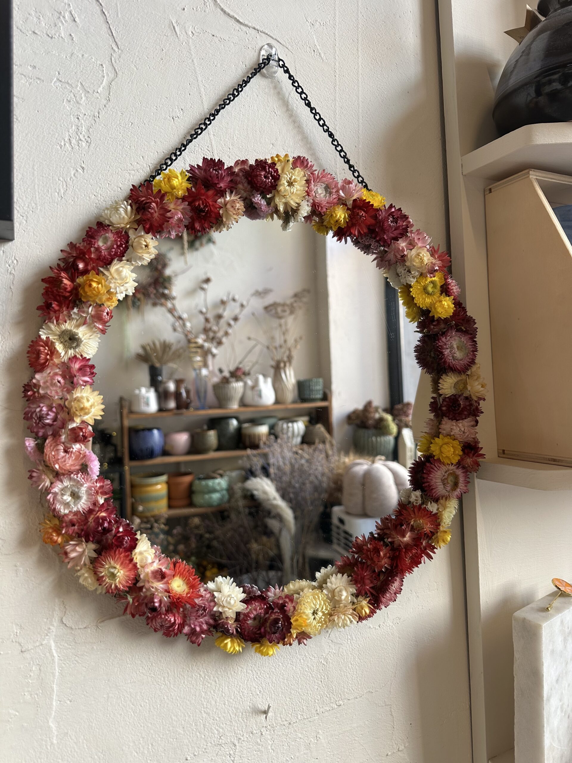 Ručne vyrábané zrkadlo so sušenými slamienkamiUnikátne zrkadlo zdobené sušenými slamienkami z našej záhrady. Každý kus je originál, vyrobený s láskou a dôrazom na detail. Prírodný dizajn vnesie do vášho domova jemnosť, teplo a kúsok prírody.